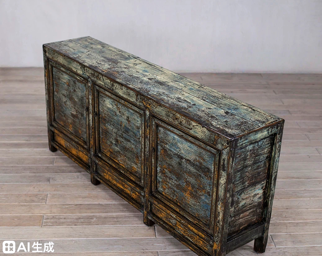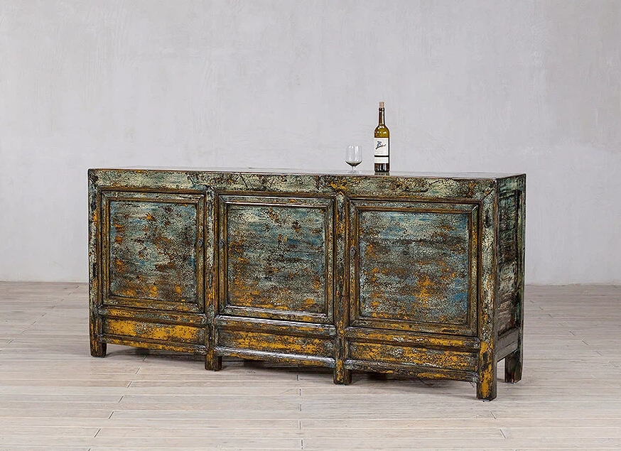 Balancing rustic allure with sophisticated artistry, this sideboard serves as both a functional storage solution and a captivating visual statement. Ideal for interiors that embrace organic textures and historical elegance, it stands as a testament to the enduring appeal of antique craftsmanship reimagined through contemporary restoration.