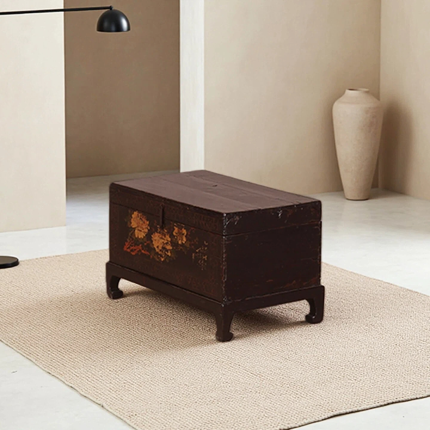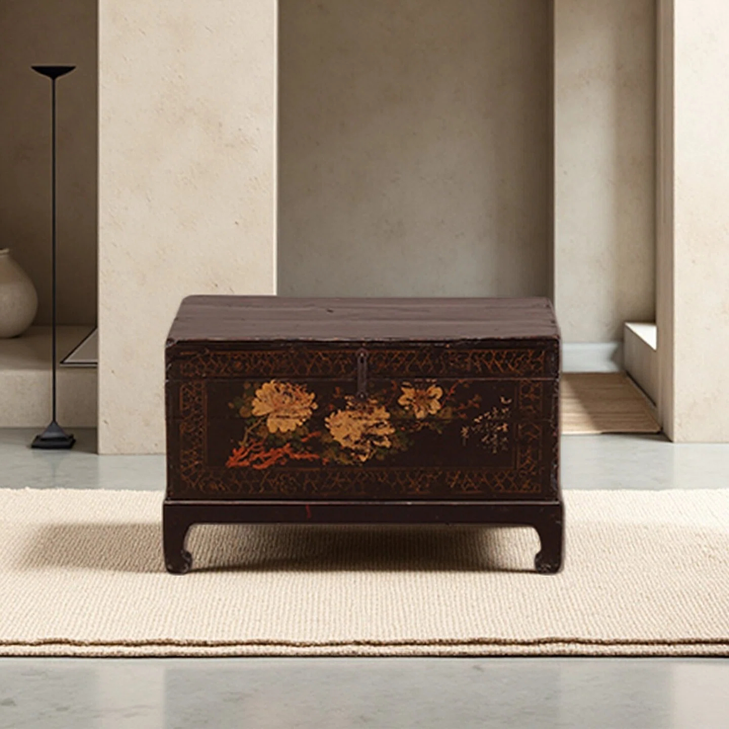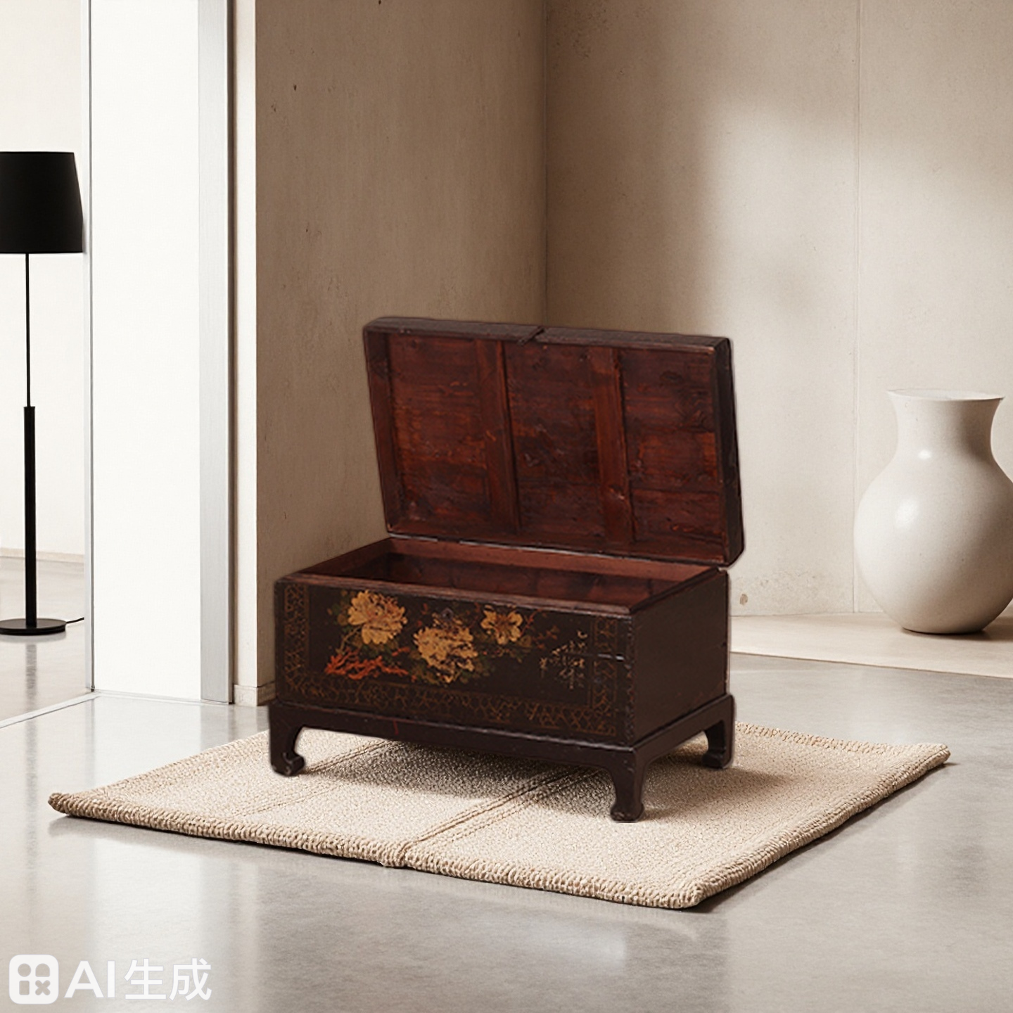 An antique storage trunk has been restored and relacquered. It is almost 100 years old in great condition