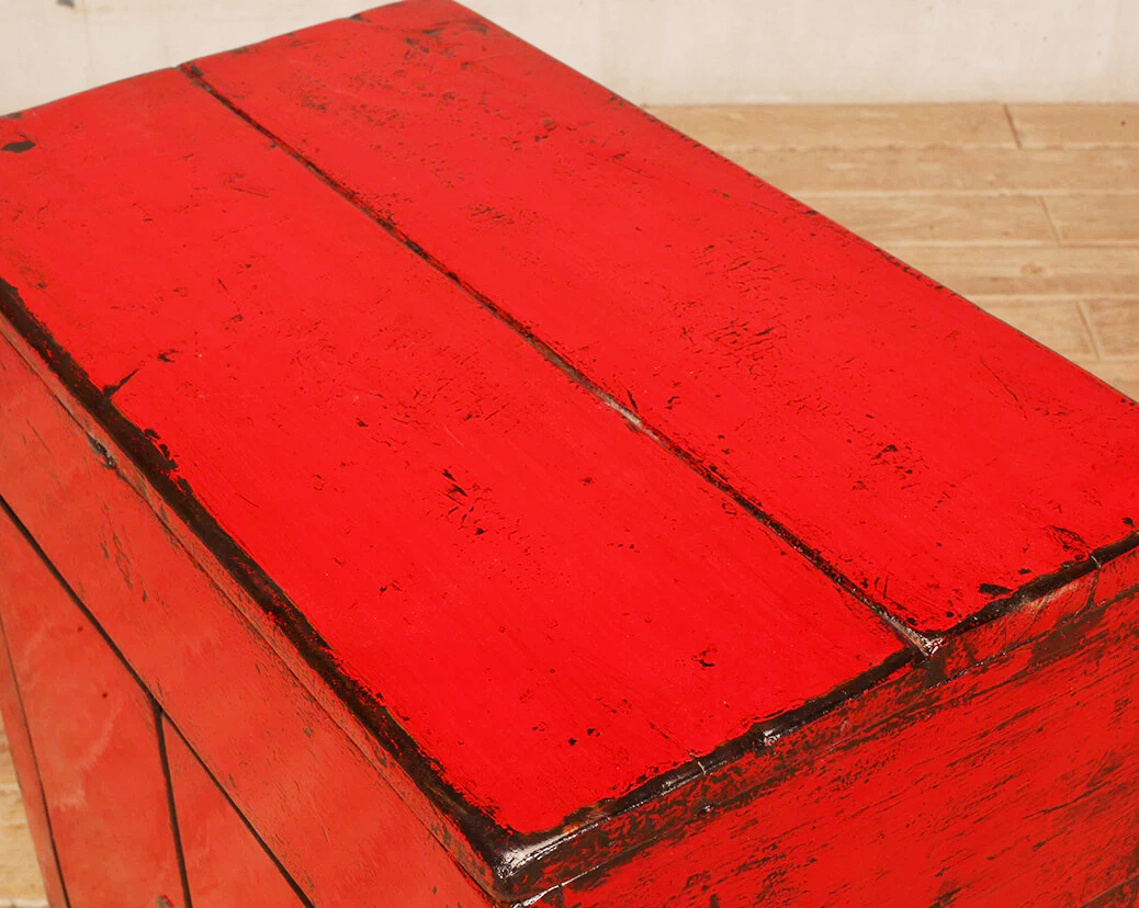 • Top Surface: A removable, fitted lid in matching red lacquer, slightly overhanging for a protective ledge—versatile for displaying small artefacts or as a lidded compartment.