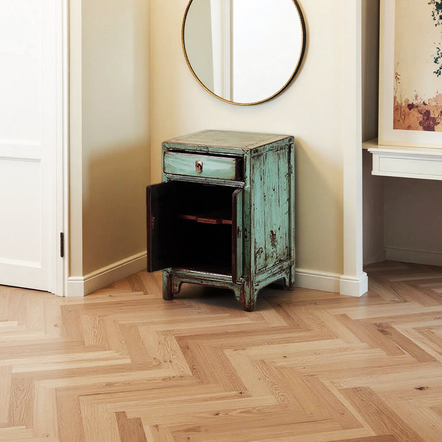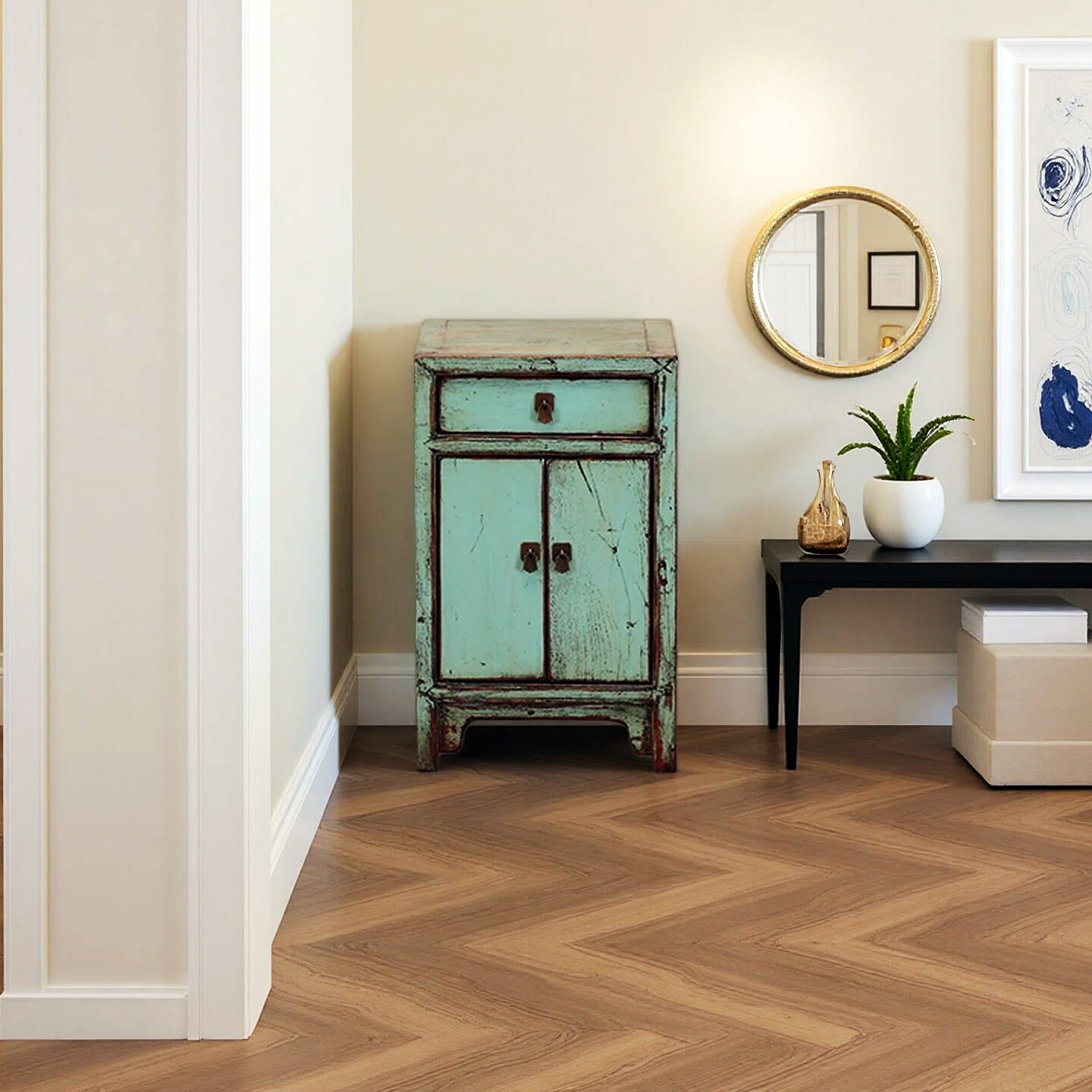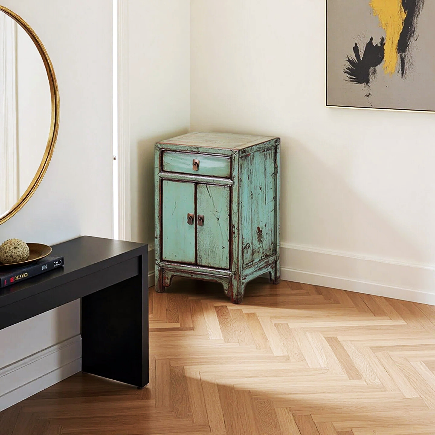 An original old piece two doors and one drawer cabinet has been restored to its old days’ glory